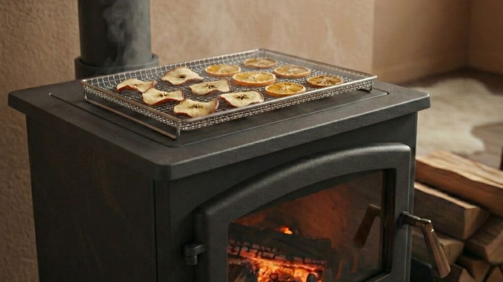 薪ストーブの利用後の微熱と乾燥した空気は、食材の乾燥に最適です。電力を使わずに、甘みが凝縮されたヘルシーなドライフルーツが作れます。