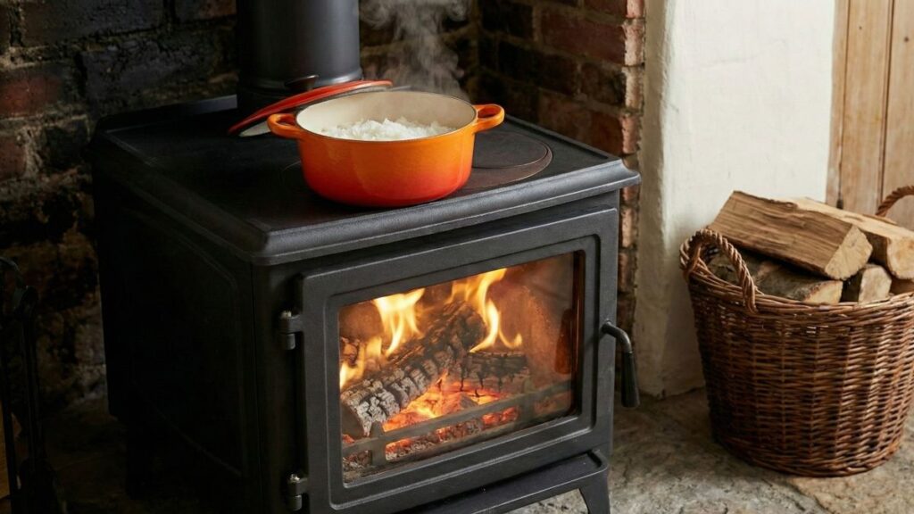 薪ストーブの天板(トッププレート)は、温度が安定しており、均一な熱が長時間続くため、繊細な火加減を要する調理に向いています。